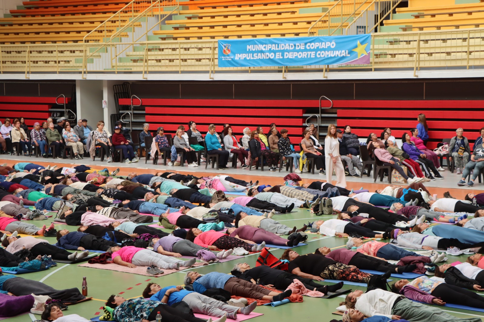 estas actividades, el estadio techado estaba repleto de personas mayores,